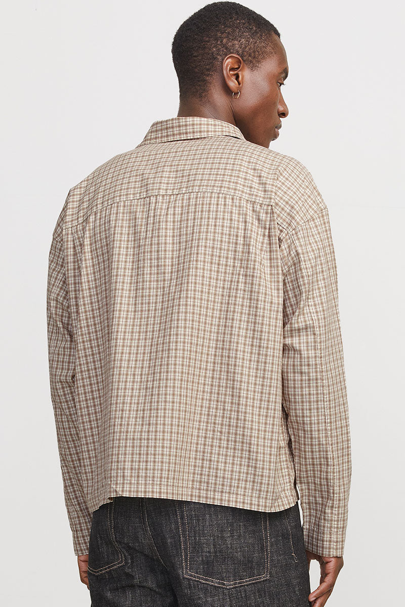 - Het overhemd heeft lange mouwen en knoopsluiting