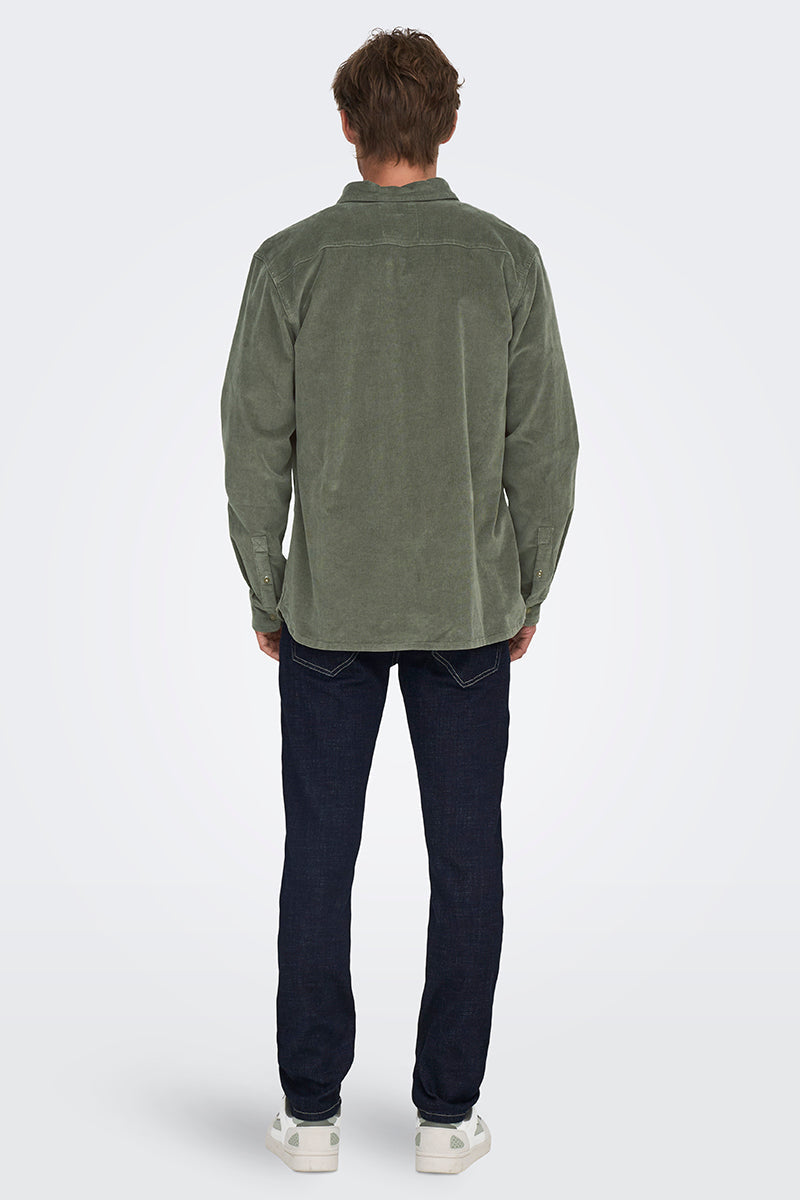 Michael Regular Fit Stretch Cord Shirt LS Castor Gray