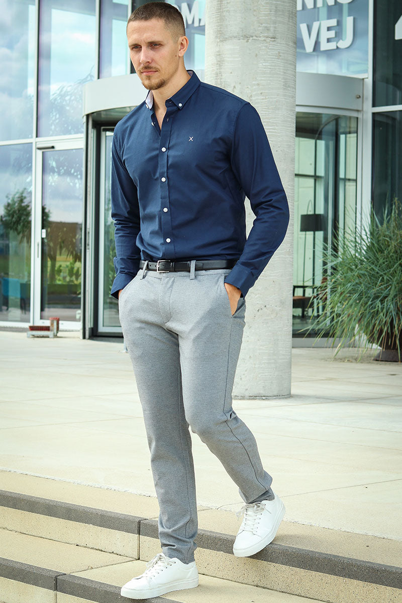 Oxford Stretch Plain L/S Navy