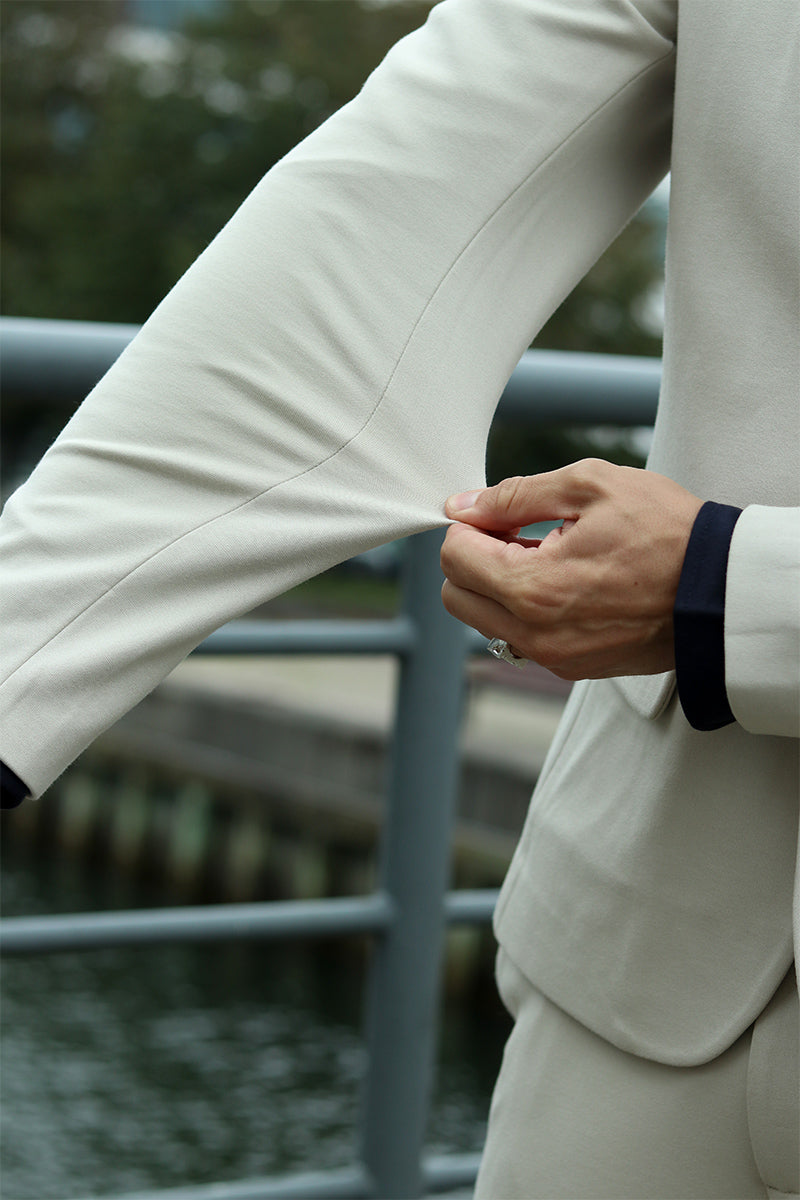2. Pasvorm: Kies een pak dat bij je lichaam past, en laat de mouw stoppen bij je pols.