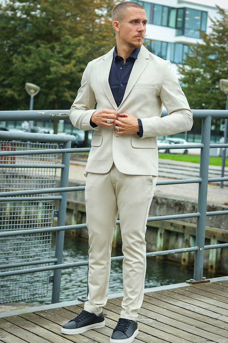 De perfecte pasvorm van het pak hangt af van je lichaamsbouw. Als je meer aan de slanke kant bent, zal een slank pak goed staan. Heb je een breder silhouet, dan staat een wijdvallend pak goed. Welk pak je ook kiest, je kunt niet verkeerd gaan bij 2Trendy. Je kunt het pak ook altijd meenemen naar een kleermaker als er aanpassingen nodig zijn. Een van de dingen die je er echt goed uit zal laten zien, is wanneer de mouwen van de blazer tot rond je pols gaan, en ongeveer een centimeter ruimte laten voor het overhemd. Zo zie je er buitengewoon stijlvol uit. Je kunt ook spelen met de lengte van de broek. Tegenwoordig is een iets kortere broek in combinatie met loafers erg populair. Wil je echter de ouderwetse classy look, dan is een broek van normale lengte met een paar geklede schoenen de juiste keuze.