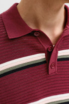Maine Knit Stripe Polo Cabernet