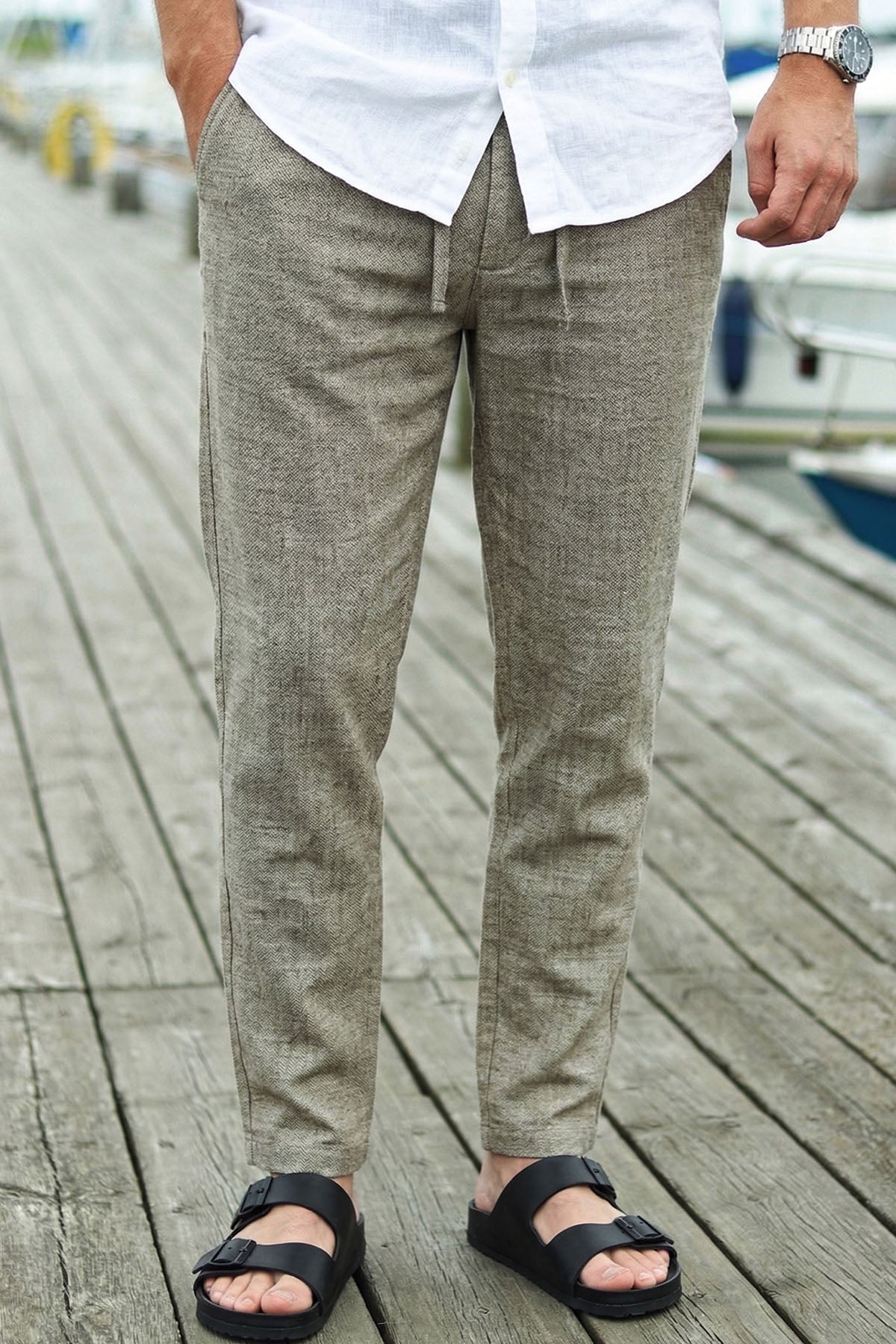 Deze broek combineert comfort met een slankgetailleerde pasvorm, ideaal voor een casual en moderne look. De midden taille zorgt voor een comfortabele en flatterende fit, terwijl de combinatie van organisch katoen en linnen zorgt voor ademend vermogen en een natuurlijke uitstraling. Dankzij een klein percentage elastaan biedt de stof ook voldoende rek voor meer bewegingsvrijheid. Het subtiele design in de kleur Delicioso met een gemengde oatmeal-detail maakt deze broek veelzijdig inzetbaar voor verschillende gelegenheden.