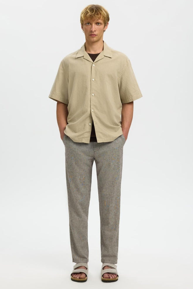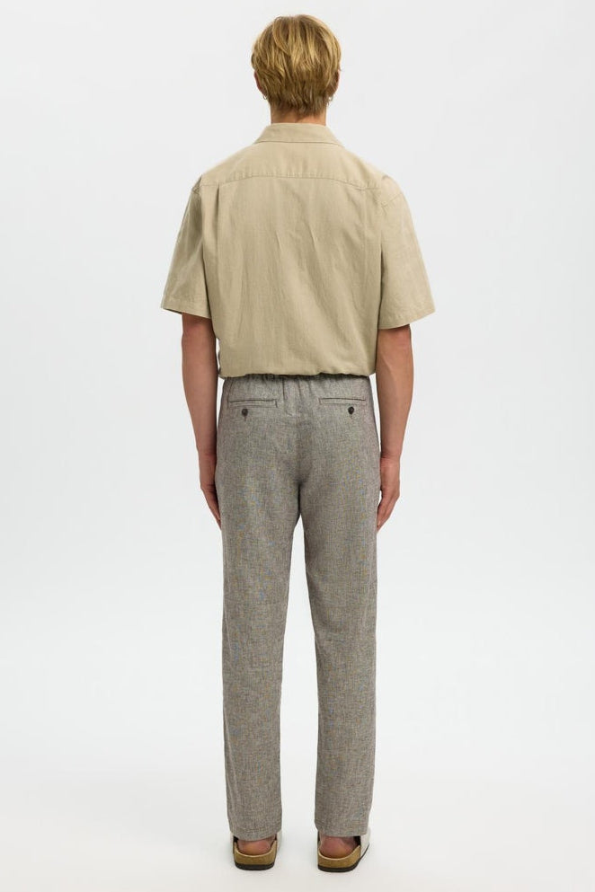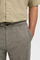 Deze broek combineert comfort met een slankgetailleerde pasvorm, ideaal voor een casual en moderne look. De midden taille zorgt voor een comfortabele en flatterende fit, terwijl de combinatie van organisch katoen en linnen zorgt voor ademend vermogen en een natuurlijke uitstraling. Dankzij een klein percentage elastaan biedt de stof ook voldoende rek voor meer bewegingsvrijheid. Het subtiele design in de kleur Delicioso met een gemengde oatmeal-detail maakt deze broek veelzijdig inzetbaar voor verschillende gelegenheden.