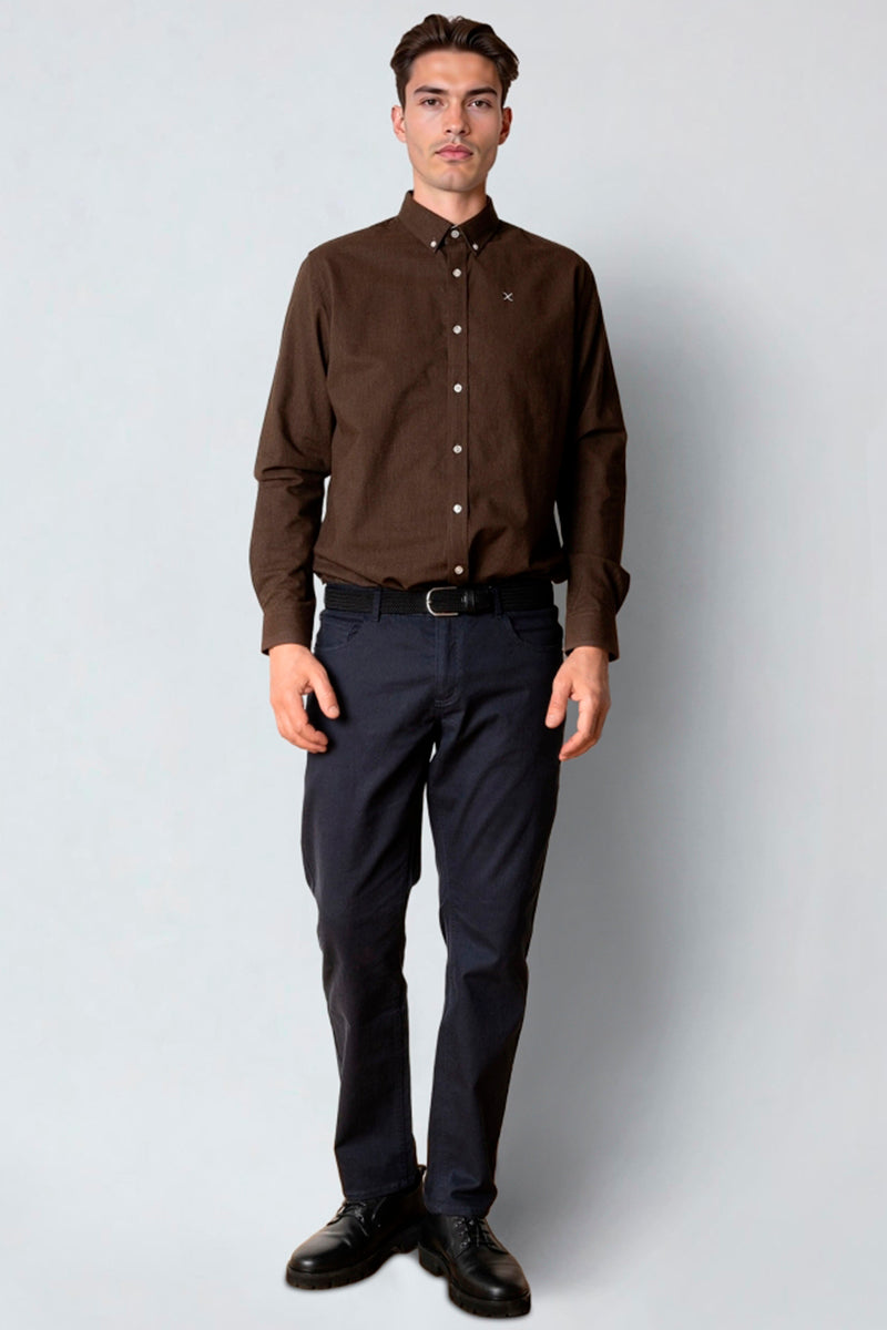 - Stretch overhemd met knoopsluiting en geborduurd logo op de linkerborst.