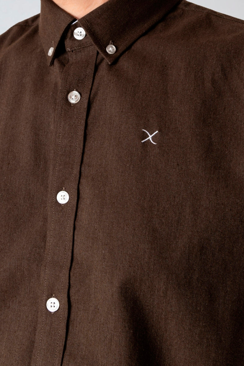 - Het overhemd heeft een button-down kraag en een ronde zoom.