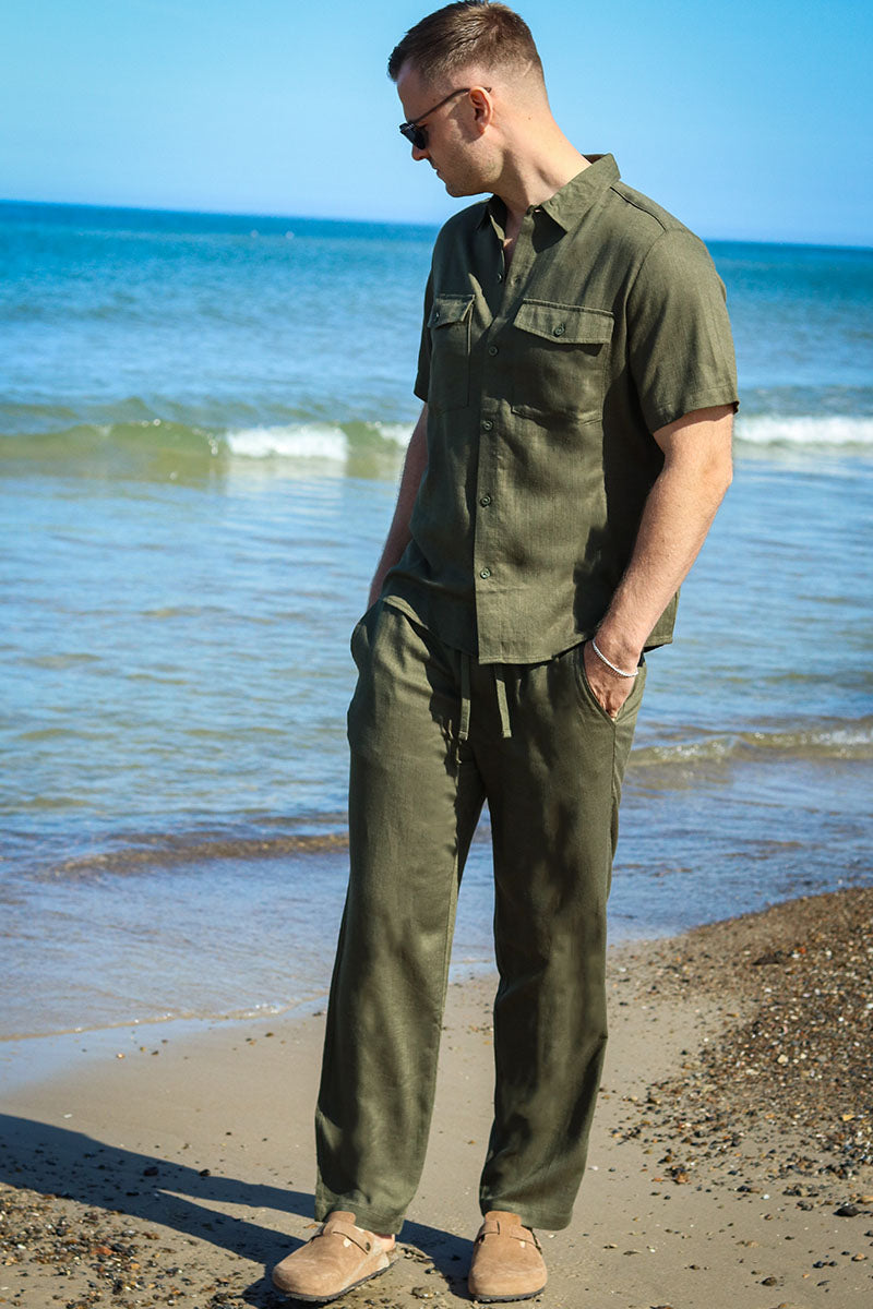 Kari Relaxed Cuba Shirt Viscose Linen Olive Night
