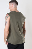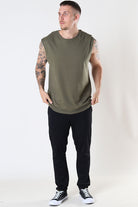Urban Classics T-shirt. Een lekkere look a like tanktop in een olijfgroene kleur. Trendy details met een ripped "mouwen" en aan de onderkant van de hemt. Kwaliteit: 100% katoen
