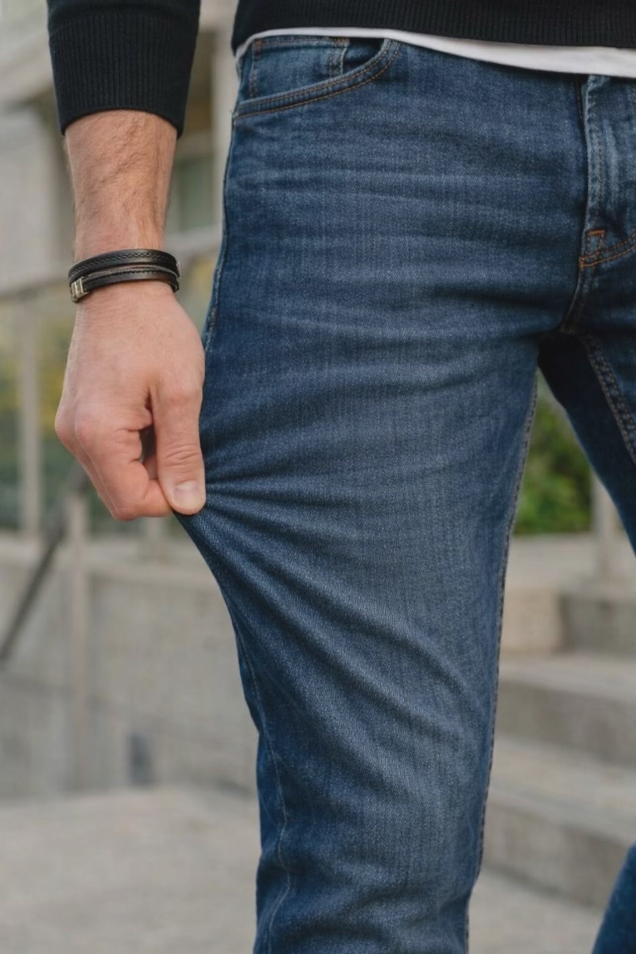 Deze powerflex jeans biedt een comfortabele pasvorm en is gemaakt van een mix van katoen, polyester en elastaan, wat zorgt voor een goede stretch en draagcomfort. De donkere blauwe denimkleur maakt deze jeans veelzijdig en geschikt voor verschillende gelegenheden. Het ontwerp is gericht op volwassen mannen en valt onder de NOOS-collectie, met een eigentijdse uitstraling en duurzame materialen.