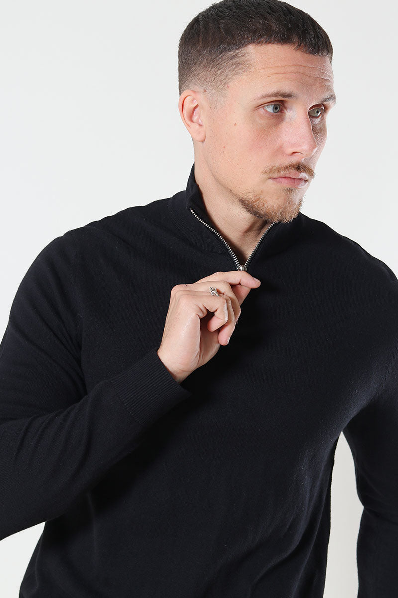JJEEMIL KNIT HALF ZIP NOOS Black