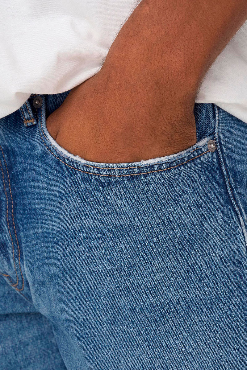 Deze straight fit jeans biedt de perfecte combinatie van comfort en een tijdloze uitstraling. Gemaakt van een mix van biologisch katoen en gerecycled katoen, voelt de stof zacht en ademend aan. De mid waist pasvorm zorgt voor een comfortabele fit, terwijl de klassieke straight fit met lichte taps toelopende pijpen zorgt voor een moderne look. De jeans is voorzien van knoopsluiting en riemlussen, wat het draaggemak verhoogt. De medium blue denim kleur geeft de broek een veelzijdige uitstraling die bij veel outfits past.