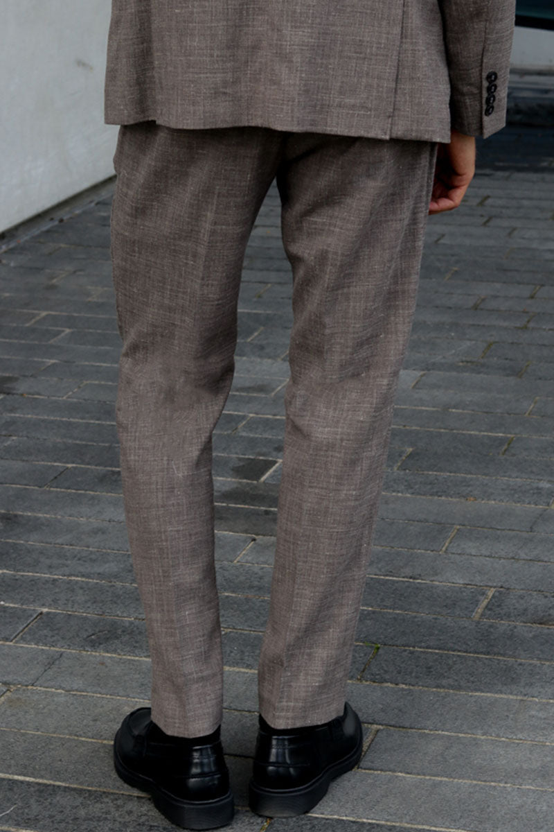 SLIM OASIS LINEN PANTS Dark Sand Melange