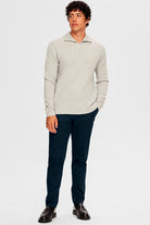 Dane LS Structure Knit Half Zip Light Grey Melange