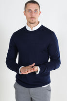 Tray LS Merino Knit Crew Neck Navy Blazer