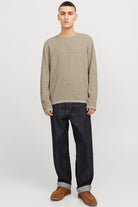 • Beige gebreide trui met lange mouwen in relaxed fit