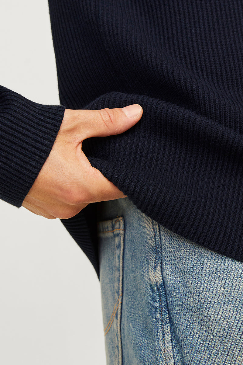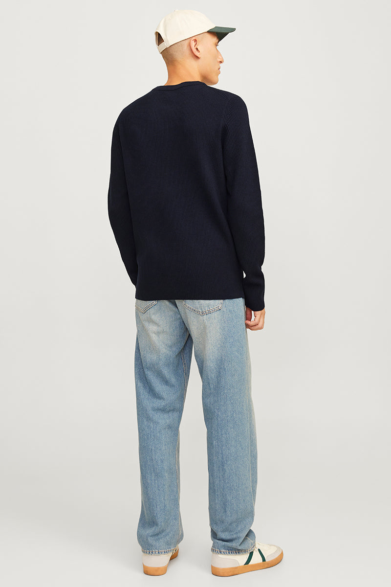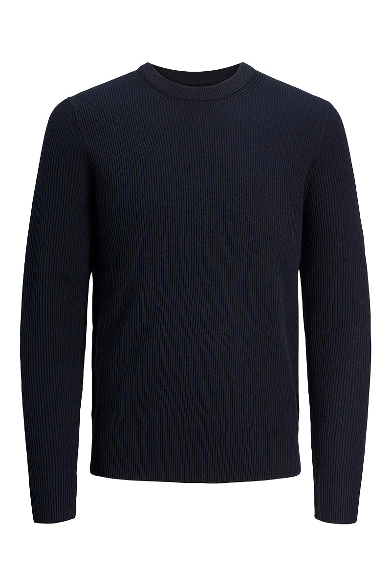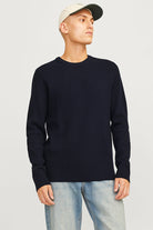 - Donkerblauwe trui met lange mouwen in structuur fit