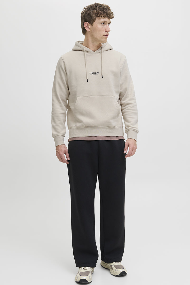 - De hoodie heeft een kangaroo‑zak en ribboorden bij mouwen en zoom