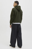 - De hoodie heeft een kangaroo‑zak en ribboorden bij mouwen en zoom