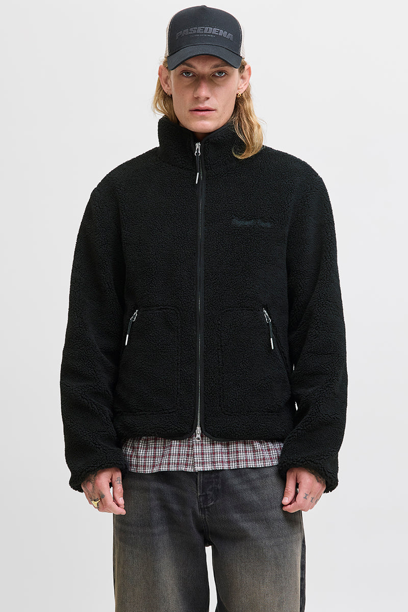 • De jas heeft een hoge kraag en rits aan de voorzijde en bij de zakken