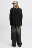 • De trui heeft een ronde hals, lange mouwen en een grove structuur. Daarnaast met ribboorden bij de mouwen en zoom.