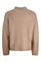 - De trui heeft een ronde hals, lange mouwen en een grove structuur. Daarnaast met ribboorden bij de mouwen en zoom.