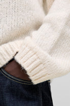 - De trui heeft een ronde hals, lange mouwen en een grove structuur. Daarnaast met ribboorden bij de mouwen en zoom.