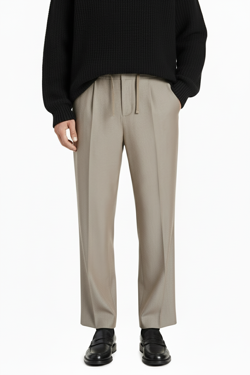 - Broeken met trekkoord in de taille plus haak‑en‑oogsluiting en ritssluiting
