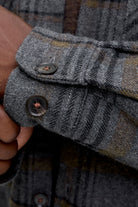 • Donkergrijze geruite overshirt met lange mouwen