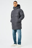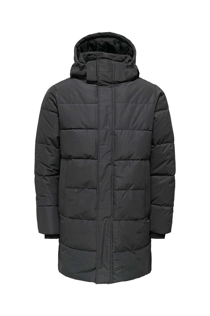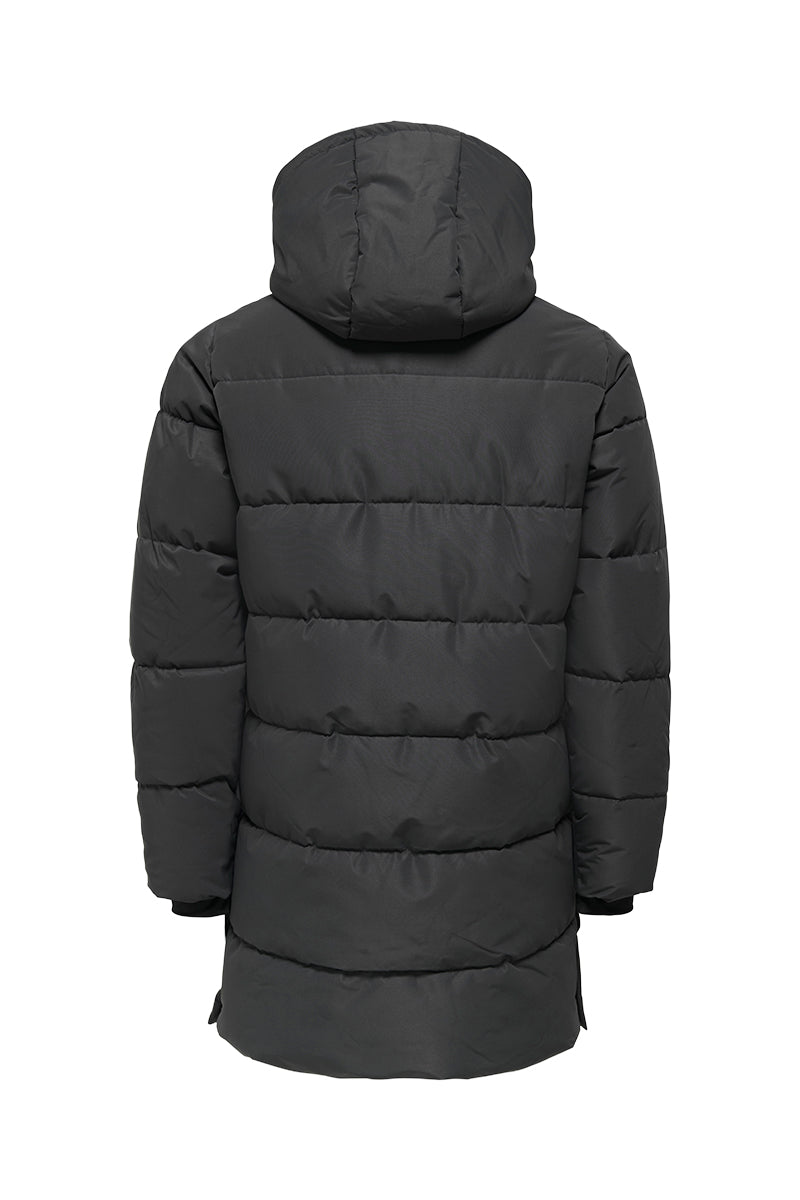 - Winterjas heeft twee voorzakken met knoopsluiting en een binnenzak.