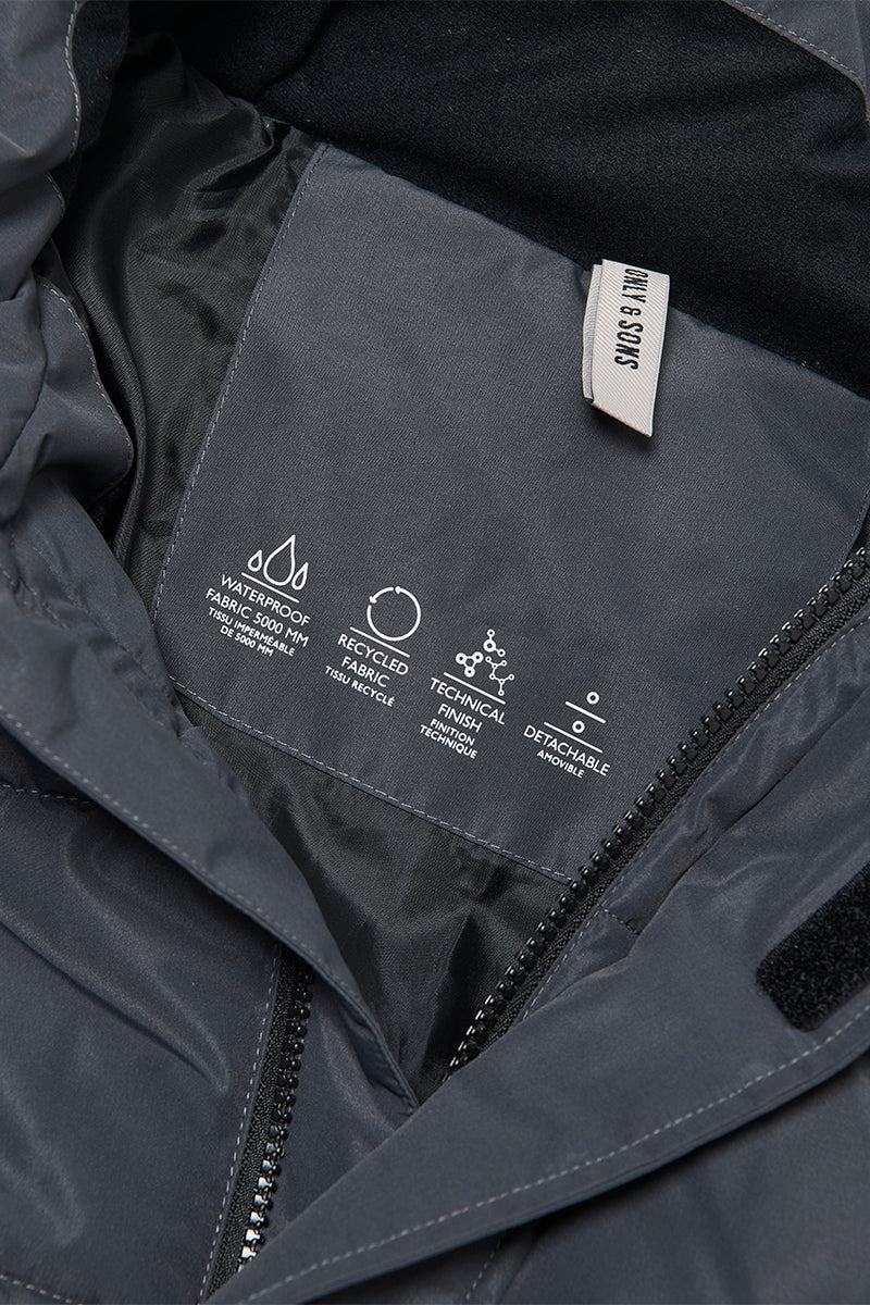 - Winterjas met 2‑wegs rits en klittenbandsluiting.