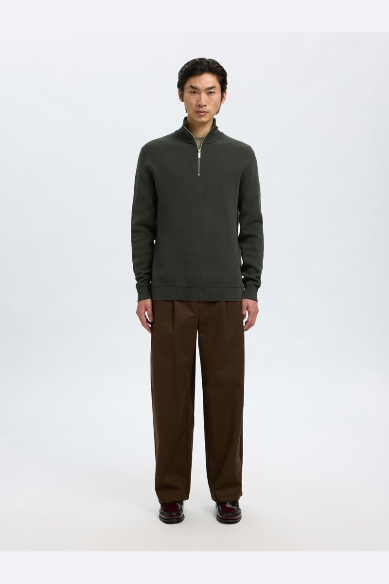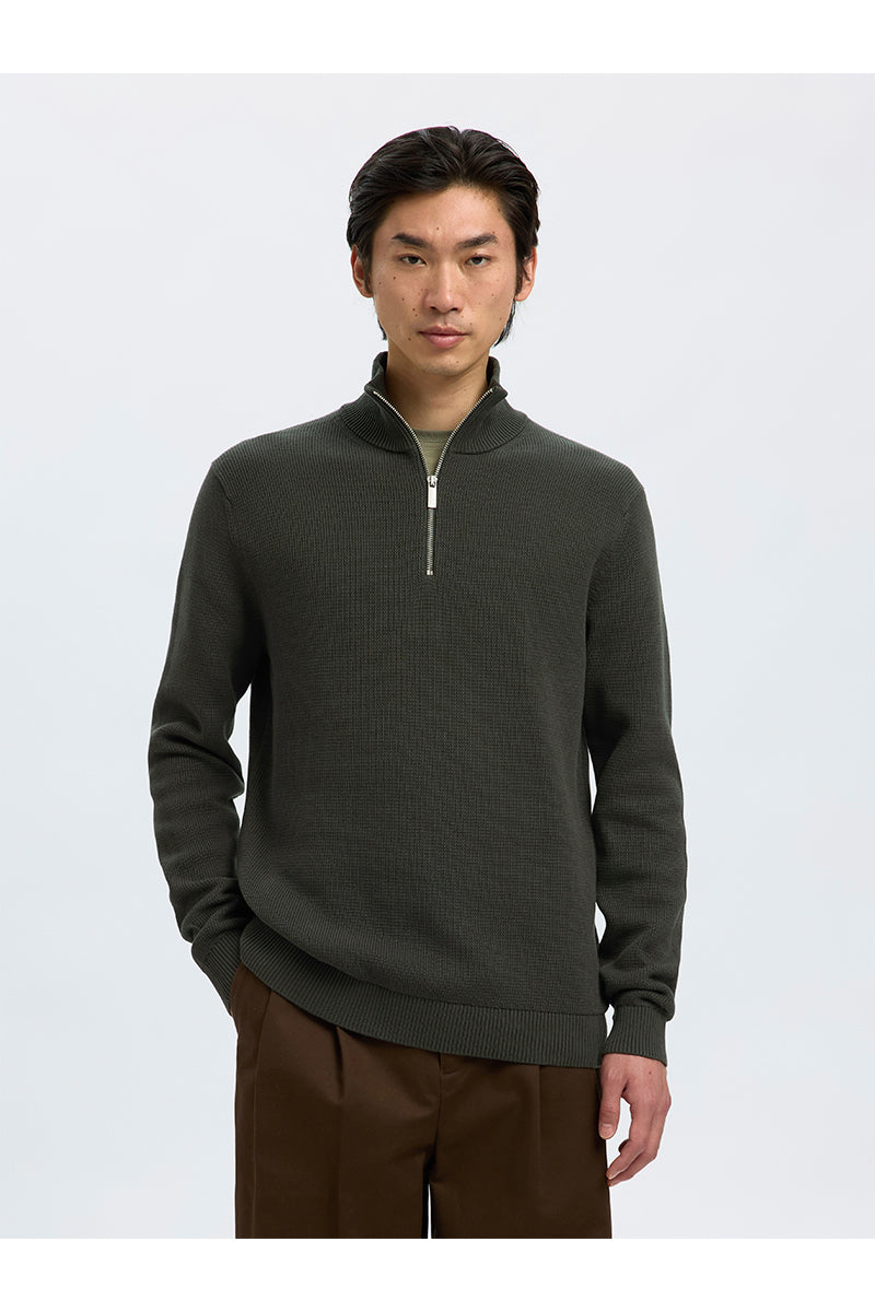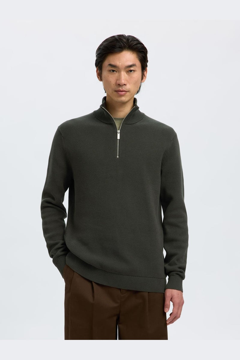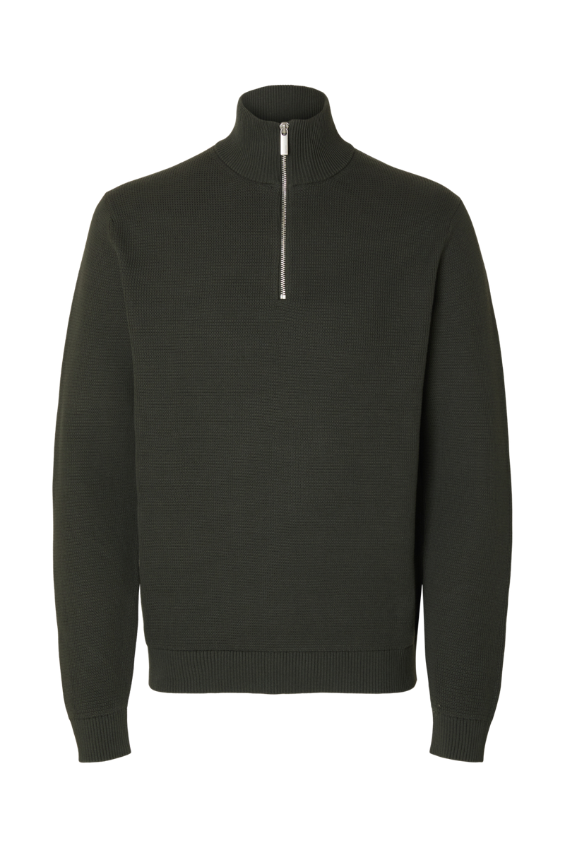 Dane LS Structure Knit Kalf Zip Deep Forest