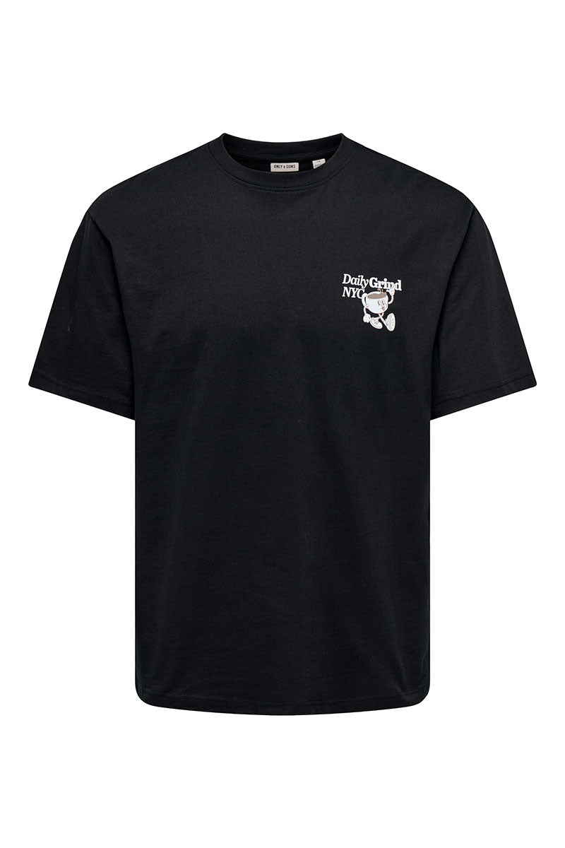 - T‑shirt met grote print op de rug en kleinere print op de borst