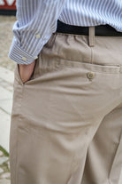 Deze losse chino broek biedt een comfortabele pasvorm en is vervaardigd uit een mix van gerecycled polyester, viscose en elastaan, wat zorgt voor een soepel en duurzaam draagcomfort. De broek is uitgevoerd in een subtiele chinchillakleur die fantastisch combineert met diverse casual looks. Dankzij de riemlussen is hij gemakkelijk te stylen met je favoriete riem, wat net dat beetje extra geeft aan je outfit.