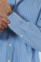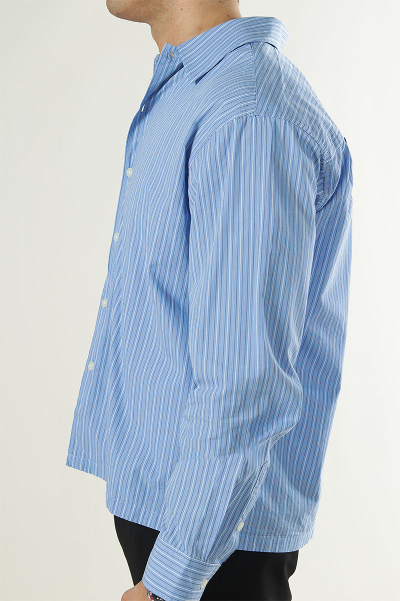 Dit relaxte overhemd combineert comfort met een stijlvolle uitstraling, ideaal voor casual en formele gelegenheden. Het shirt heeft een klassieke kraag en lange mouwen, wat het veelzijdig maakt voor verschillende seizoenen. De zachte stof voelt prettig aan op de huid en heeft een subtiele streepjespatroon dat een moderne twist geeft aan de tijdloze look. Verkrijgbaar in een middelblauwe tint die gemakkelijk te combineren is met andere kledingstukken.