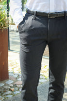 De Comfort Pants in Stripe Black kleur zijn ontworpen met een elegante tapende fit, waardoor de broek over een modern en stijlvol silhouet beschikt. De broek zit strak rond de enkels en losser rond de heupen, wat zorgt voor een comfortabele en flexibele pasvorm.