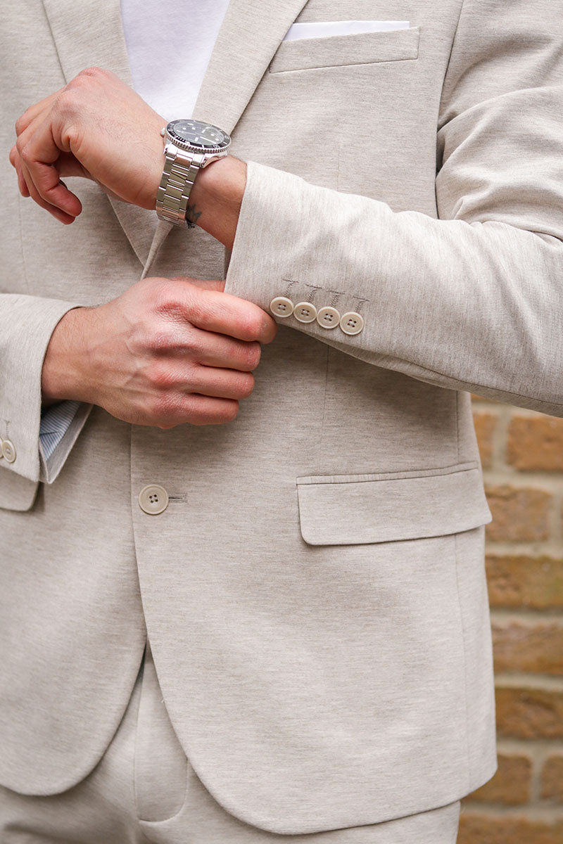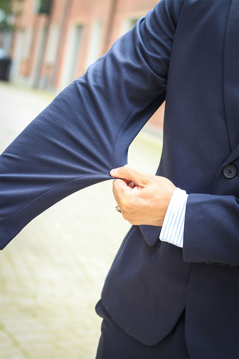 2. Pasvorm: Kies een pak dat bij je lichaam past, en laat de mouw stoppen bij je pols.