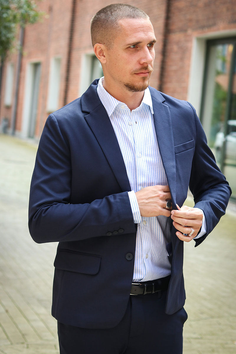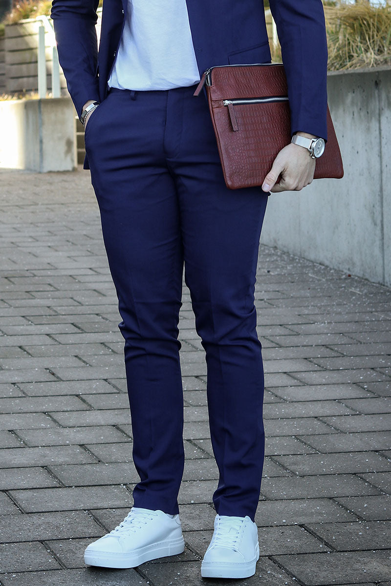 De perfecte pasvorm van het pak hangt af van je lichaamsbouw. Als je meer aan de slanke kant bent, zal een slank pak goed staan. Heb je een breder silhouet, dan staat een wijdvallend pak goed. Welk pak je ook kiest, je kunt niet verkeerd gaan bij 2Trendy. Je kunt het pak ook altijd meenemen naar een kleermaker als er aanpassingen nodig zijn. Een van de dingen die je er echt goed uit zal laten zien, is wanneer de mouwen van de blazer tot rond je pols gaan, en ongeveer een centimeter ruimte laten voor het overhemd. Zo zie je er buitengewoon stijlvol uit. Je kunt ook spelen met de lengte van de broek. Tegenwoordig is een iets kortere broek in combinatie met loafers erg populair. Wil je echter de ouderwetse classy look, dan is een broek van normale lengte met een paar geklede schoenen de juiste keuze.