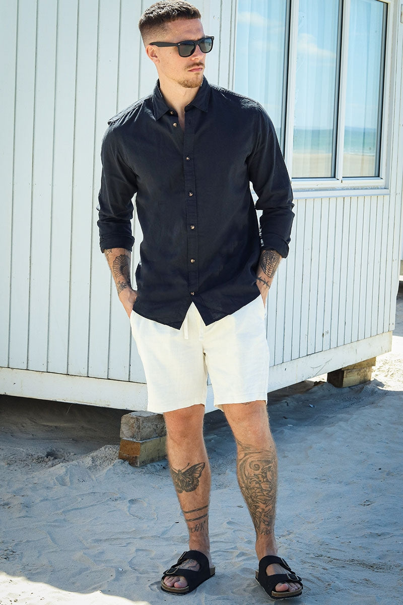 - Lang mouw linnen overhemd met klassieke kraag.