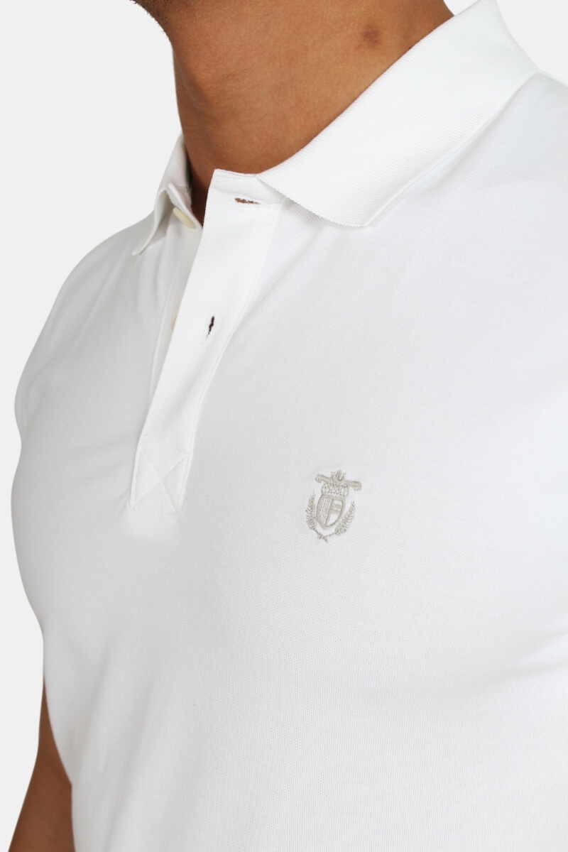SelectedMooi wit. het logo is grijs dat op de borst staat.De knopen zijn wit en de polo heeft korte mouwen . Kwaliteit: 95% Katoen en 5% elastan