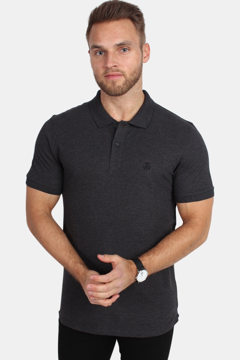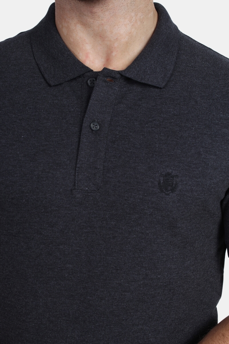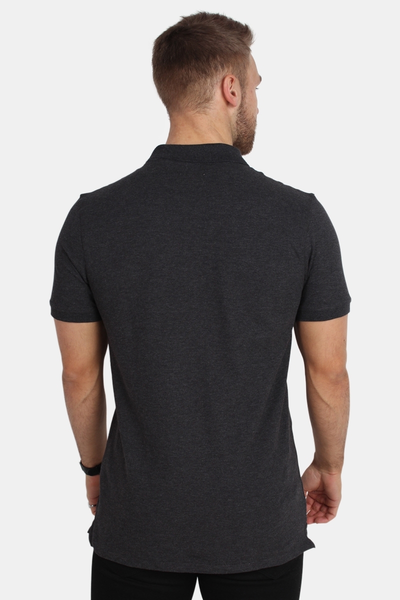 Selected PoloMelange Dark Grey . De logo op borst is lichtgoud en staat top bij de donkeren kleur. Een klassieke kraag en korte mouwen.. Kwaliteit: 57% Katoen, 38% polyester en 5% elastan.